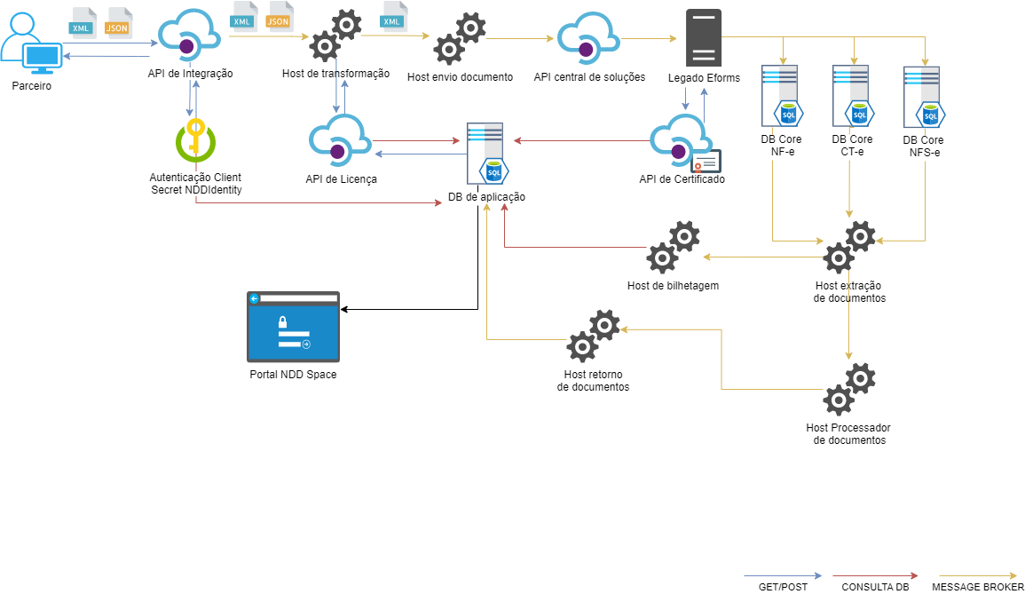 O NDD Space pode ser integrado ao ERP do Parceiro, permitindo que processe documentos fiscais através de Application Programming Interface ou Interface de Programação de Aplicação (APIs) para visualização no portal.
